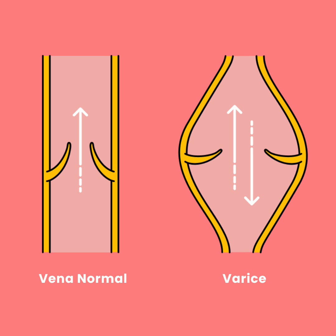 Cuando la mala circulación empieza a deformar y retorcer una vena hasta convertirla en varicosa, la presión dentro de la vena puede provocar fugas. Cuando el material del interior de la vena empieza a filtrarse más allá de la pared venosa, el organismo libera determinadas sustancias químicas, en particular el exceso de hierro de la sangre venosa desoxigenada y las histaminas.